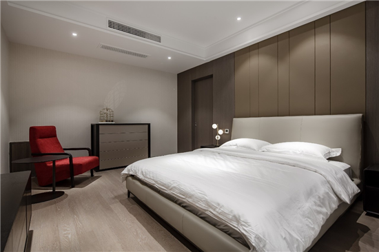 在生活的奔波中,家,是活力的补给站。轻简的陈设,朴素的着色,让卧室充满了舒适和安全感,而空间的装饰和那一抹点睛的红色,又增添了许多意趣,让每一次疲惫,都在酣眠里得到释放。待到第二天早上,又是一个美好的开始……