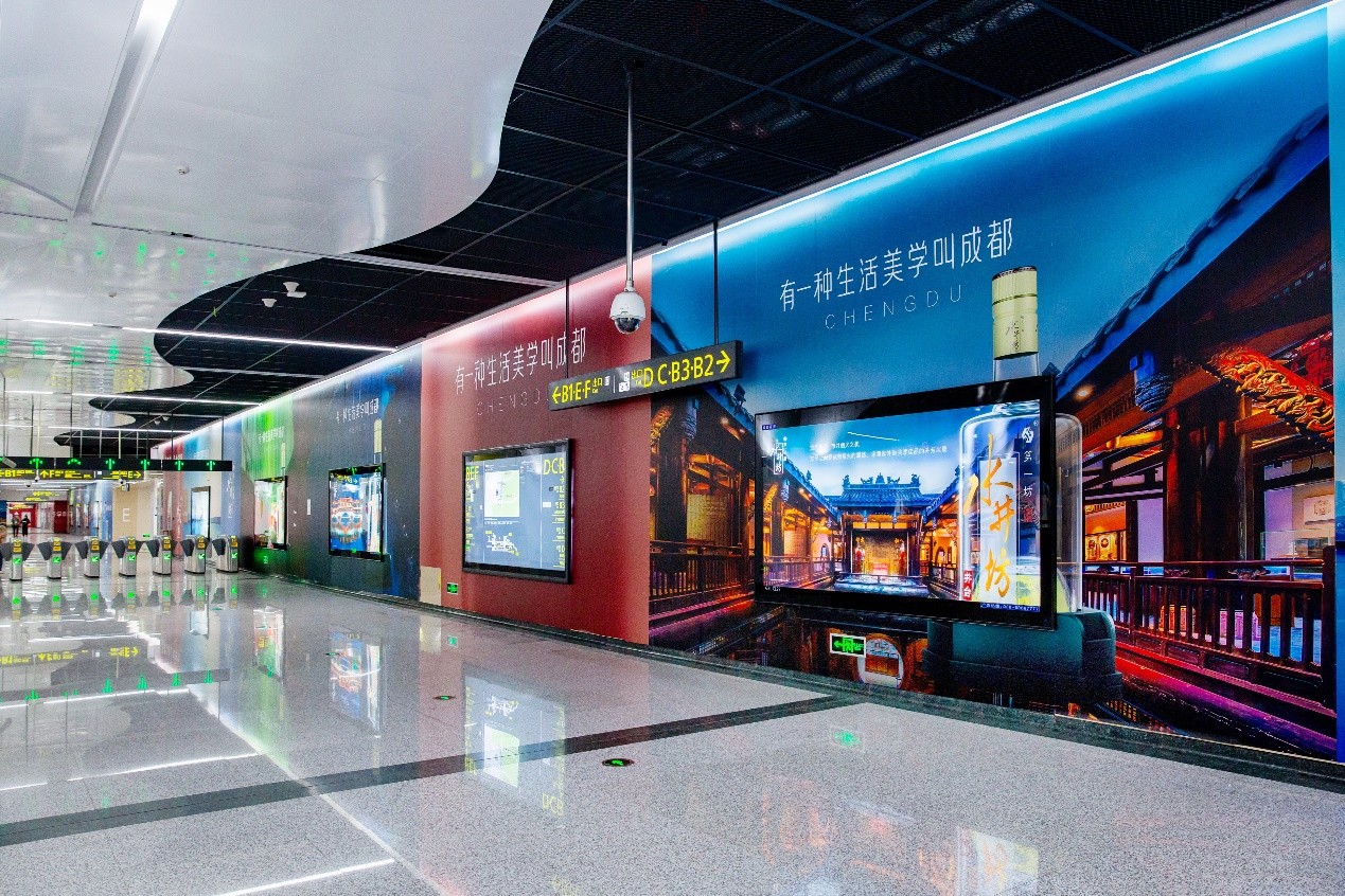 作为糖酒会嘉宾出行的首选,成都地铁一号线承载巨大的经销商客流量,在糖酒会期间,西博城的“广州路站”将被水井坊的广告“全面占领”,直击转乘地铁的参会客商。