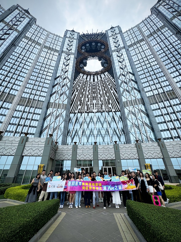行程当天,一众湾区青年游客在横琴口岸过关后乘坐穿梭巴士抵达新濠影汇酒店,品尝完自助午餐后,登上高悬130米、全球最高的8字形摩天轮影汇之星,将澳门景致尽收眼底。