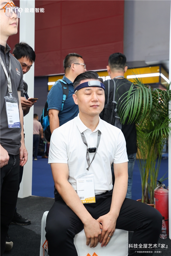 本次展会的脑控智能家居体验区,设置了“放松关灯,眨眼变色”的互动环节,用户戴上Xmuse脑电波仪即可体验用脑电控制家居场景,通过EEG技术记录大脑皮层微小电信号反映神经元活动状态,捕捉微动作判断使用者当前所处的状态,让该空间内的智能家居为使用者所服务。