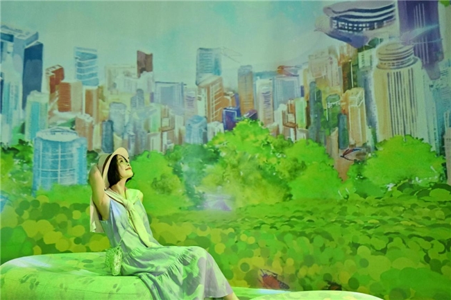 「香港─沉浸式之旅」巡回展览今日(八月九日)在广州展开,以艺术科技展示香港最新的都会魅力、优势和机遇,是香港特别行政区政府在粤港澳大湾区举办的推广活动之一。图为展览上以「多元和绿色城市」为主题的投影。