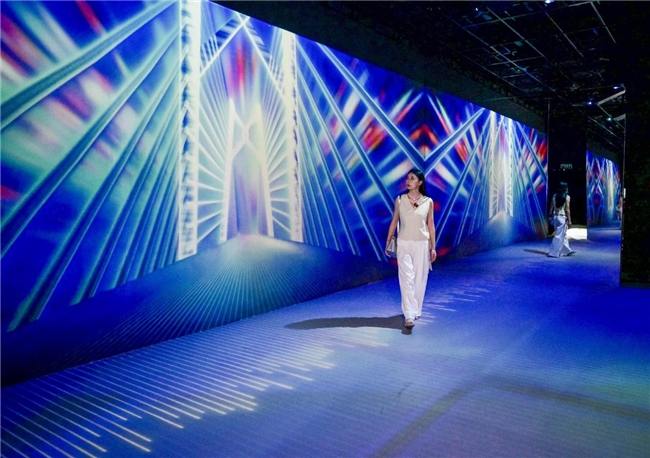 「香港─沉浸式之旅」巡回展览今日(八月九日)在广州展开,以艺术科技展示香港最新的都会魅力、优势和机遇,是香港特别行政区政府在粤港澳大湾区举办的推广活动之一。图为展览场内展示的裸眼3D装置。