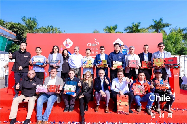 7日上午,“2024年智利周闭幕式暨智利车厘子季开幕仪式”在广州江南市场举行。江南市场是华南地区最大的果蔬批发市场之一,也是众多智利农产品进入到中国市场的第一站。智利出口促进总局局长伊格纳西奥·费尔南德斯(Ignacio Fernández)、智利驻广州总领事恺撒·甘博阿(César Gamboa)、智利驻广州商务领事宋元明(Gonzalo Rubilar)、广州市贸促会副会长黄晓峰、广州江南果菜批发市场经营管理有限公司董事长叶灿江,以及来自智利的水果协会和企业的代表们共同出席了活动。智利出口促进总局局长伊格纳西奥·费尔南德斯表示,过去一周的智利周活动中,拜访了中国4个城市进行商务交流,取得了丰硕的成果,期望未来能不断加深交流,让更多智利优质水果走进中国消费者家中。