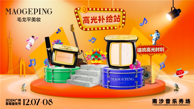 12月7日-12月8日,毛戈平美妆携手草莓音乐节强势登陆广州,在南沙音乐秀场热情开唱。在“乐出色·悦有young”的品牌主张下,毛戈平美妆以绚丽色彩为笔,和现场乐迷共赴盛会,与每一个自由灵魂共同唱响高光时刻。