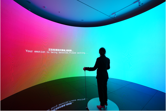 同时,BOE(京东方)以P2.6 LED弧度屏赋能艺术家费俊的互动影像装置《情绪剧场》,在高曲度的LED屏幕上实时检测并呈现观众情绪,创造具有疗愈性的音画体验。此外,黑特·史德耶尔(德)、徐冰、田晓磊等国内外艺术家的数字艺术作品,也均由BOE(京东方)提供高端显示技术支持,多方位展现数字艺术创作领域的亮眼成果。