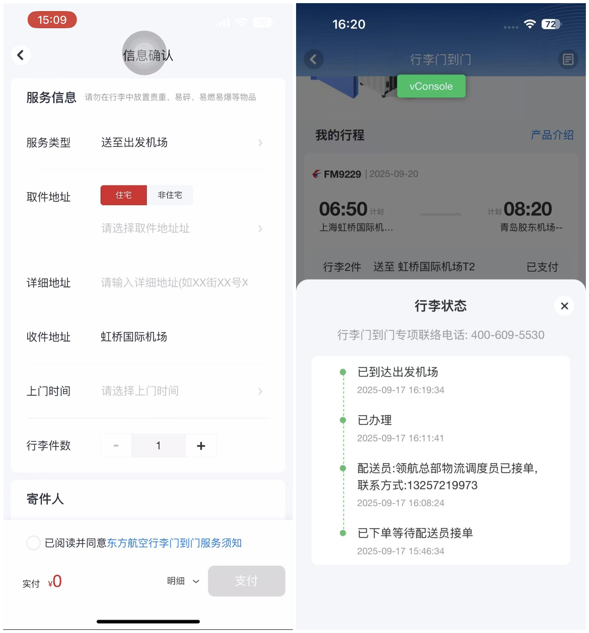 旅客乘机出行时,经常会遇到“路途中携带大件行李”“商务出行拖着行李赶会议”等痛点,东航提供的“行李门到门”服务直击旅客核心需求,旅客通过东航APP提前预约,即可享受专业人员上门取件,将行李直接运至出发机场(“门到港”服务),或从到达机场直接送回家中(“港到门”服务),省去了自己在机场办理托运和提取的繁琐手续,让旅客从出发到目的地,全程无需接触自己的托运行李,真正“解放双手”。